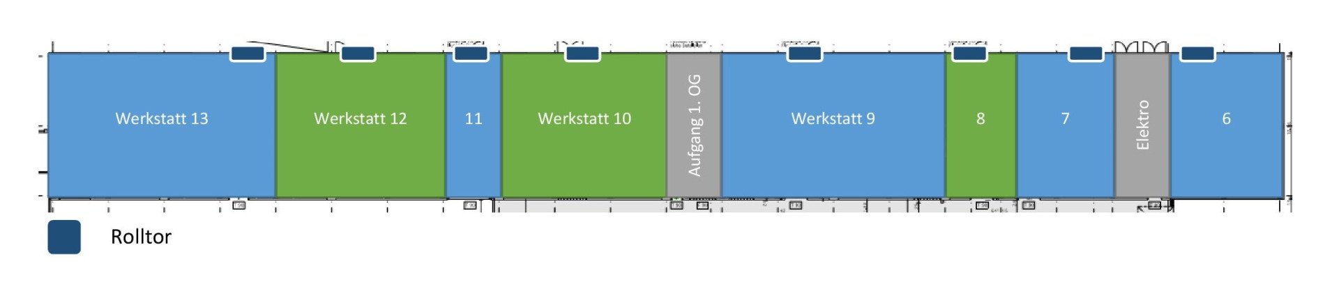 - Vorne elektrisches Rolltor, dahinter Werkstatt mit möglichst hoher Deckenhöhe. Ende. Haben wir.